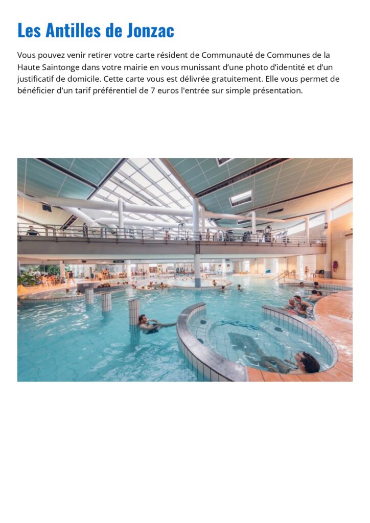 Tarif préférentiel pour les résidents de Saint Genis de Saintonge aux Antilles de Jonzac